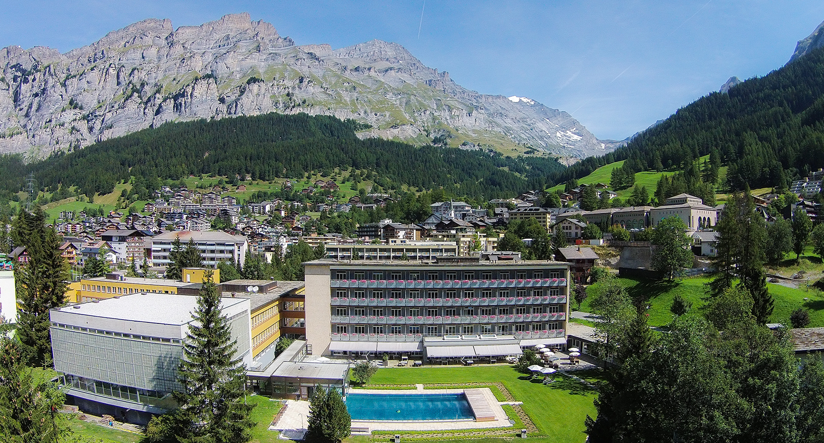 Die Klinik befindet sich in einer privilegierten Lage in Leukerbad. Dadurch können ihre Gäste in vollem Umfang von den Aktivitäten und den Geschäften des Dorfes profitieren.